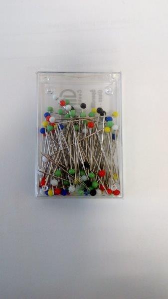 Špendlíky se skleněnou hlavou 30 x 0, 6 mm, 10 g tj.cca 90 ks v plast.krabičce, cena za 1 krabičku.