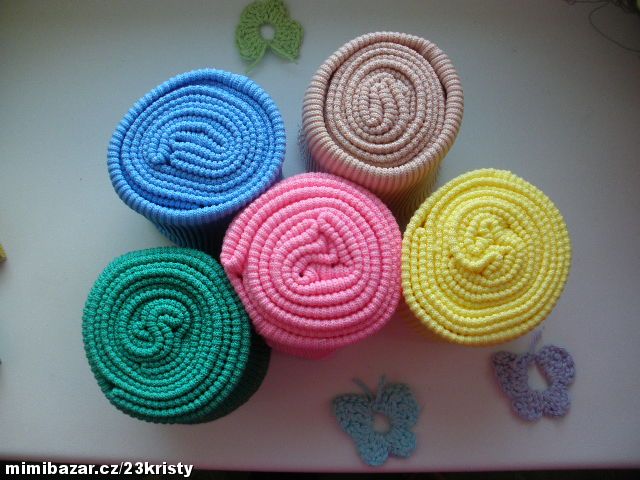 Souprava nápletů: šířka cca 8 cm - 2 ks rukávů, obvod cca 16 cm, 1 ks do pasu, obvod cca 75 cm.
