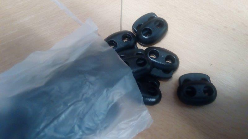 Plochá brzdička se 2 otvory, šířka 17 mm, výška 15 mm, cena za 1 ks, bílá.
