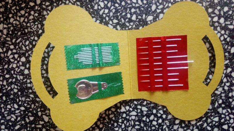 Papírový jehelníček obsahující 19 ks jehel + navlékač.