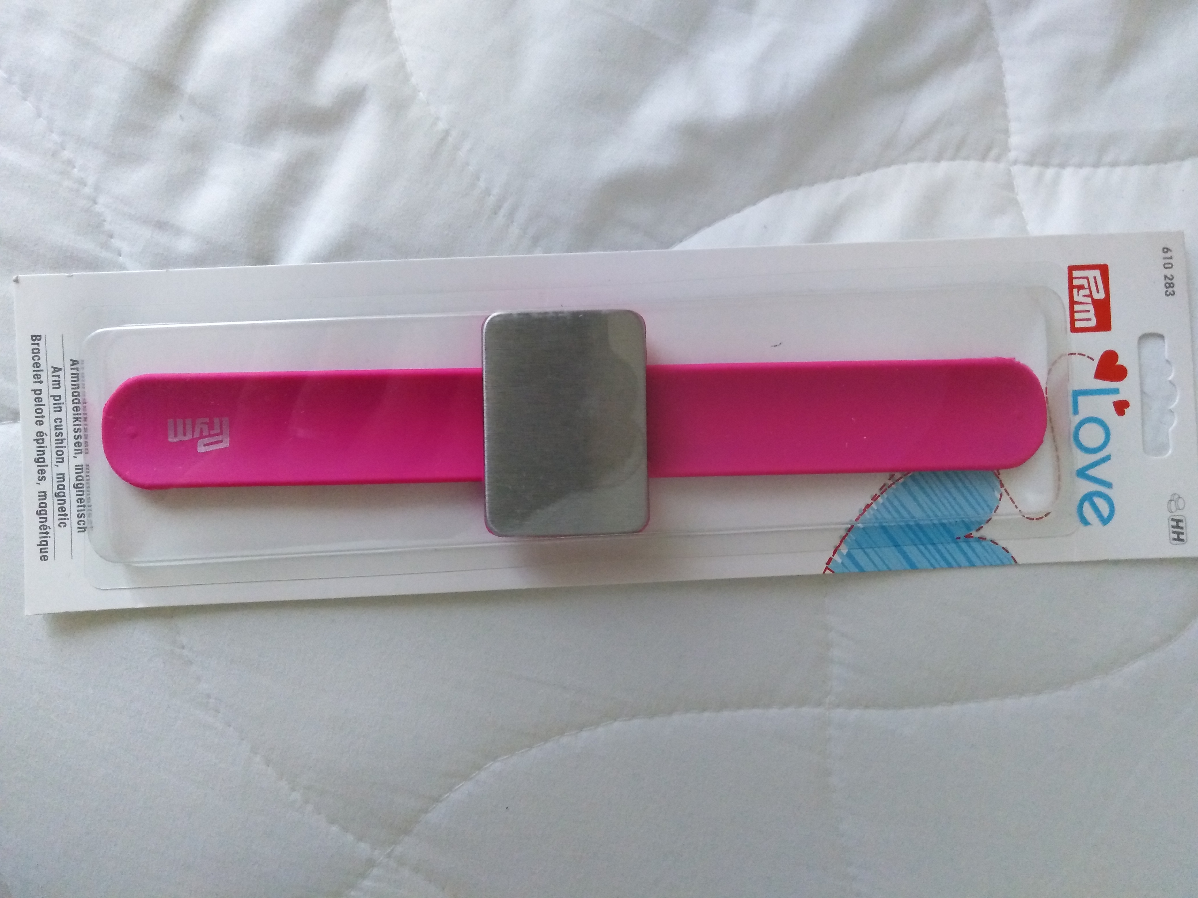 Kolekce Prym LOVE. Magnetický jehelníček na ruku se samoovíjecím silikonovým páskem.