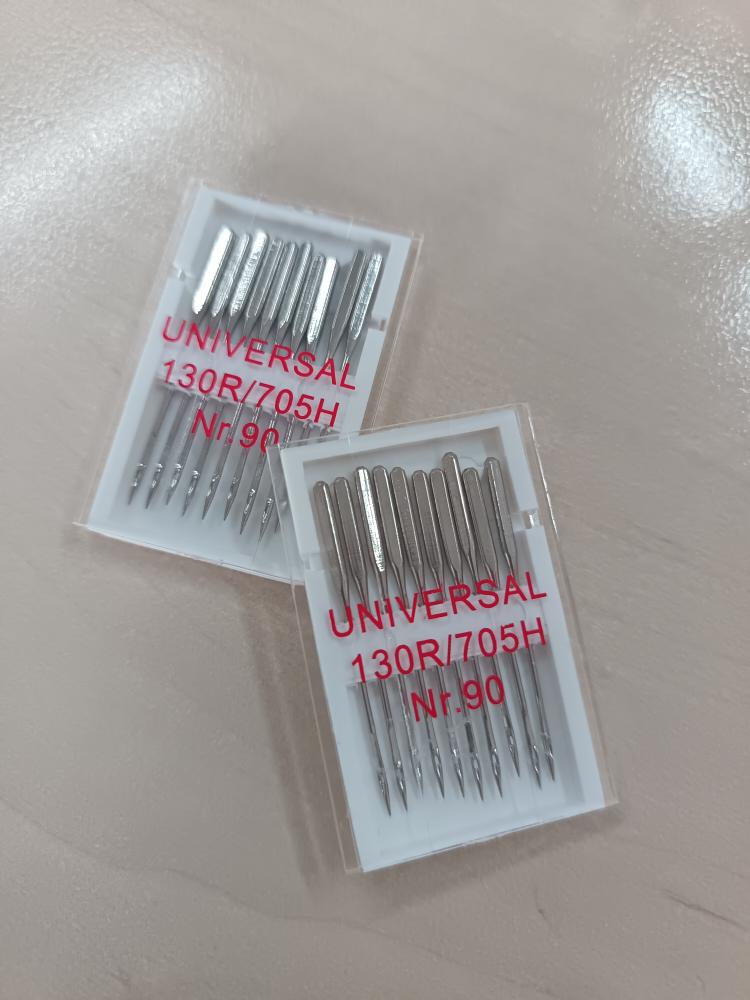 Levná univerzální strojová jehla s ploškou na dříku pro domácí šicí stroje. Cena za 1 krabičku (10 jehel v krabičce).