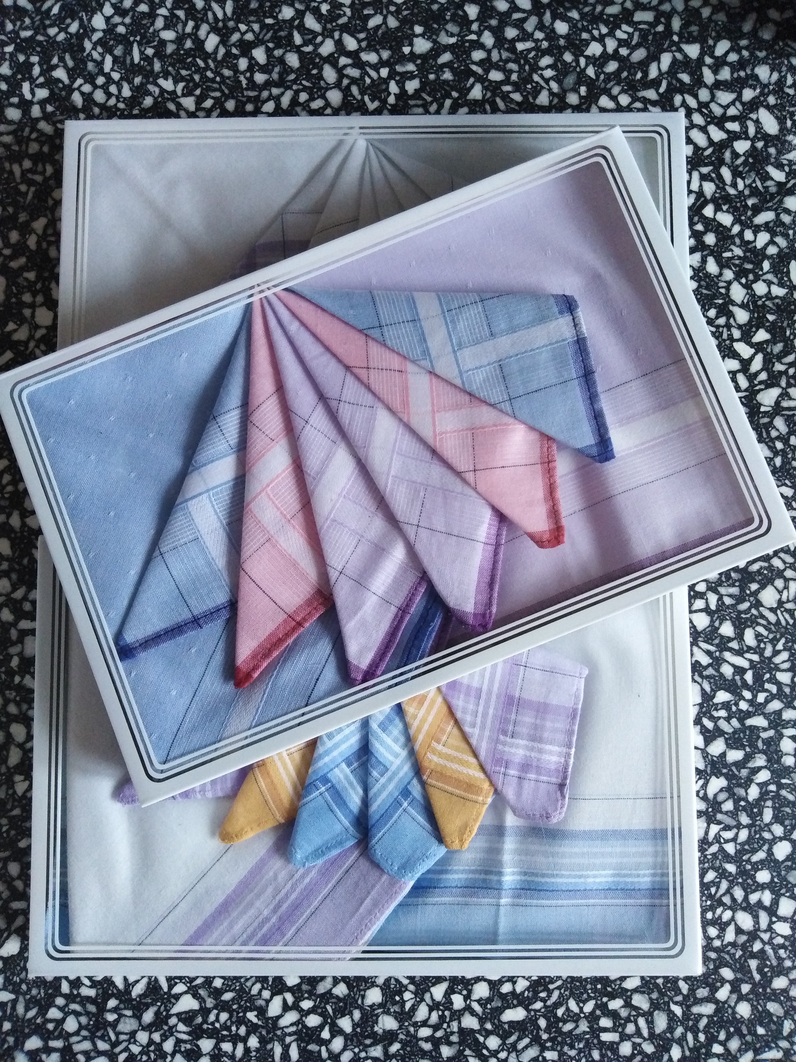 Kapesník cca 28 x 28 cm, polobarevný, bavlna česaná, 6 ks v krabičce, cena za 1 krabičku.