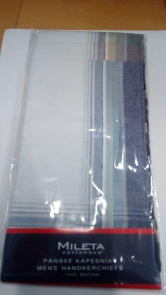 Kapesník cca 40,5 x 40,5 cm, celobarevný, bavlna česaná, 6 ks v sáčku, cena za sáček. MILETA