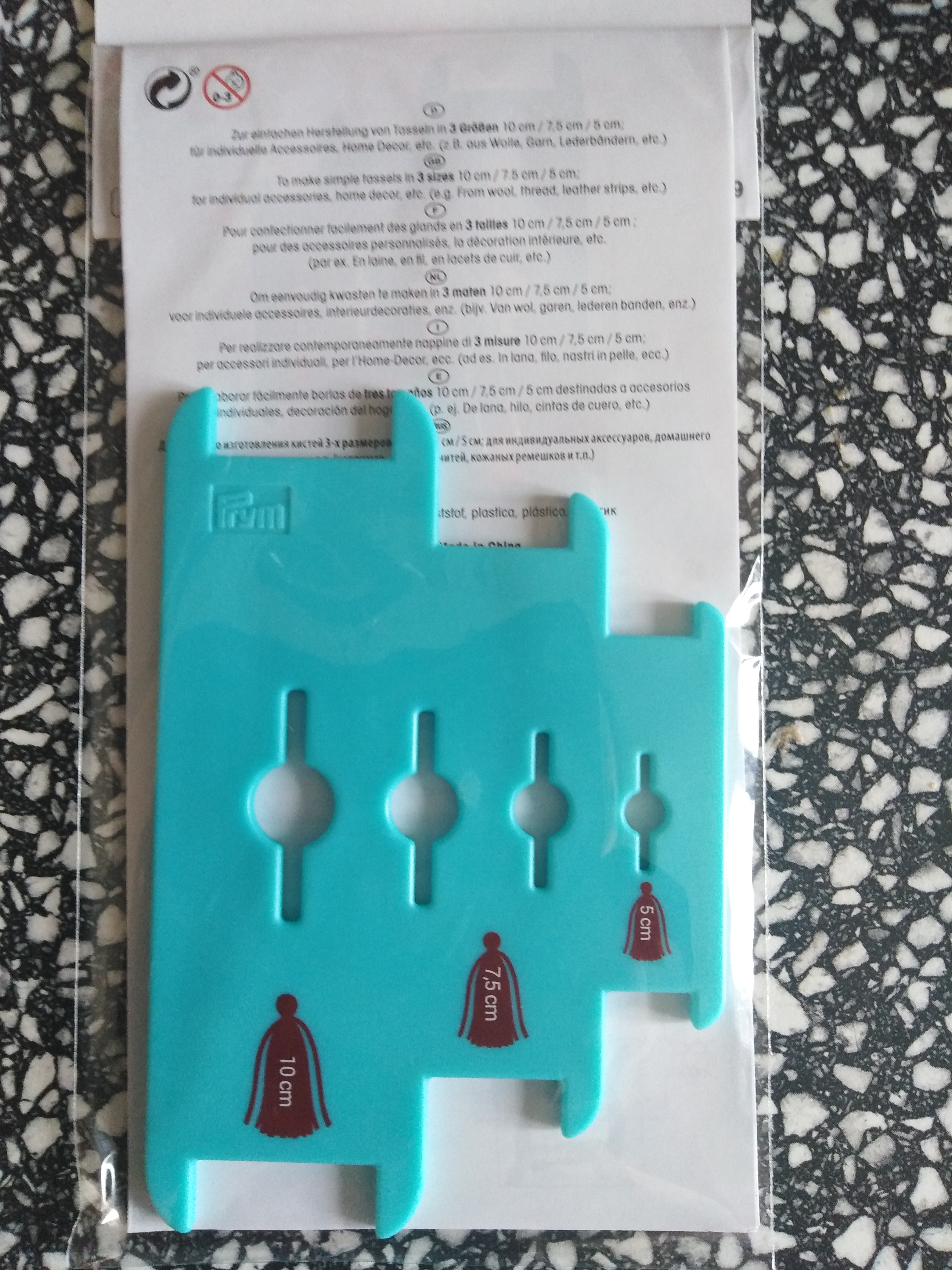 Kolekce Prym LOVE. Nástroj na výrobu střapců. Jeden nástroj pro 3 různé velikosti: 5, 7.5 a 10 cm. Obsahuje detailní krok-za-krokem návod.