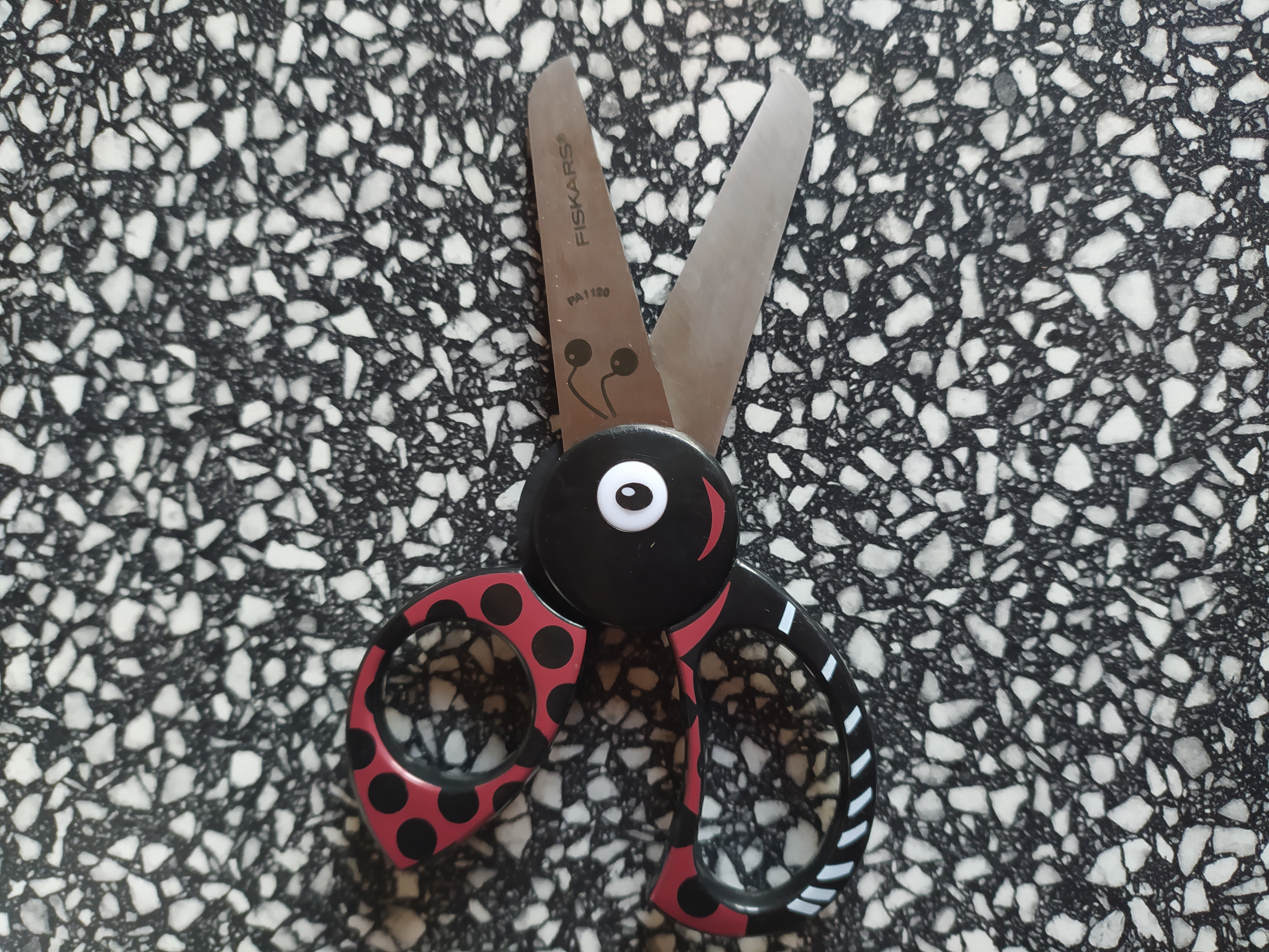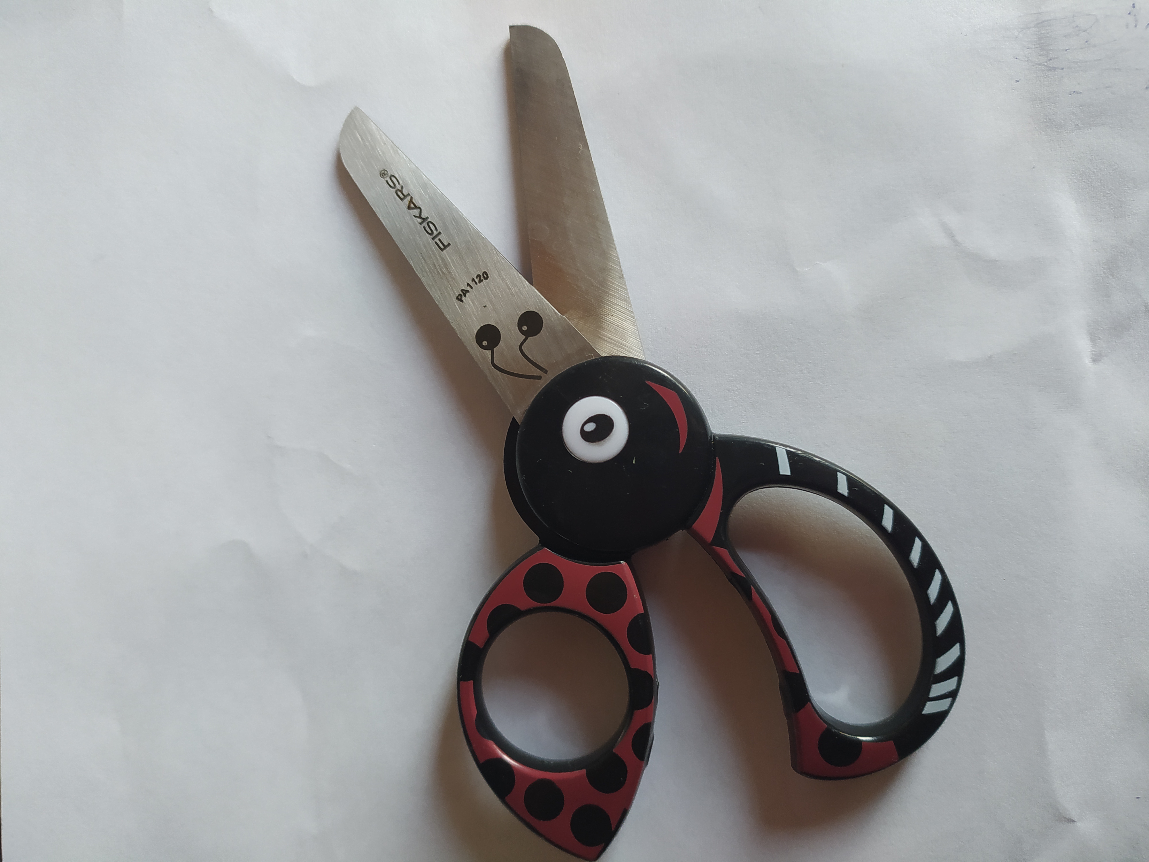 Dětské nůžky s rukojetí ve tvaru berušky s tlustými bezpečnostními čepelemi a zaoblenými hroty pro větší bezpečnost. Vhodné pro praváky i leváky, od 4 let. Délka 13 cm (délka čepele 5 cm). Finský výrobek.