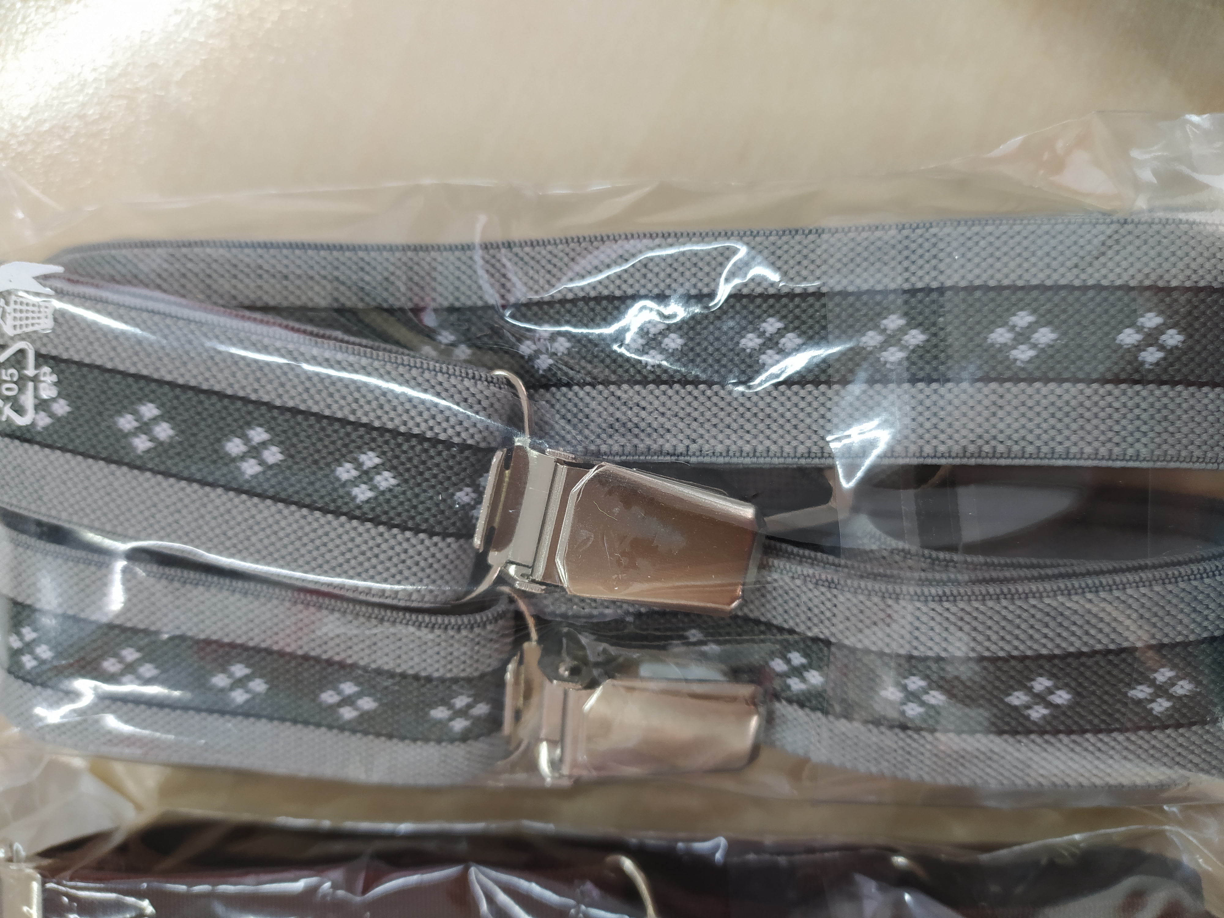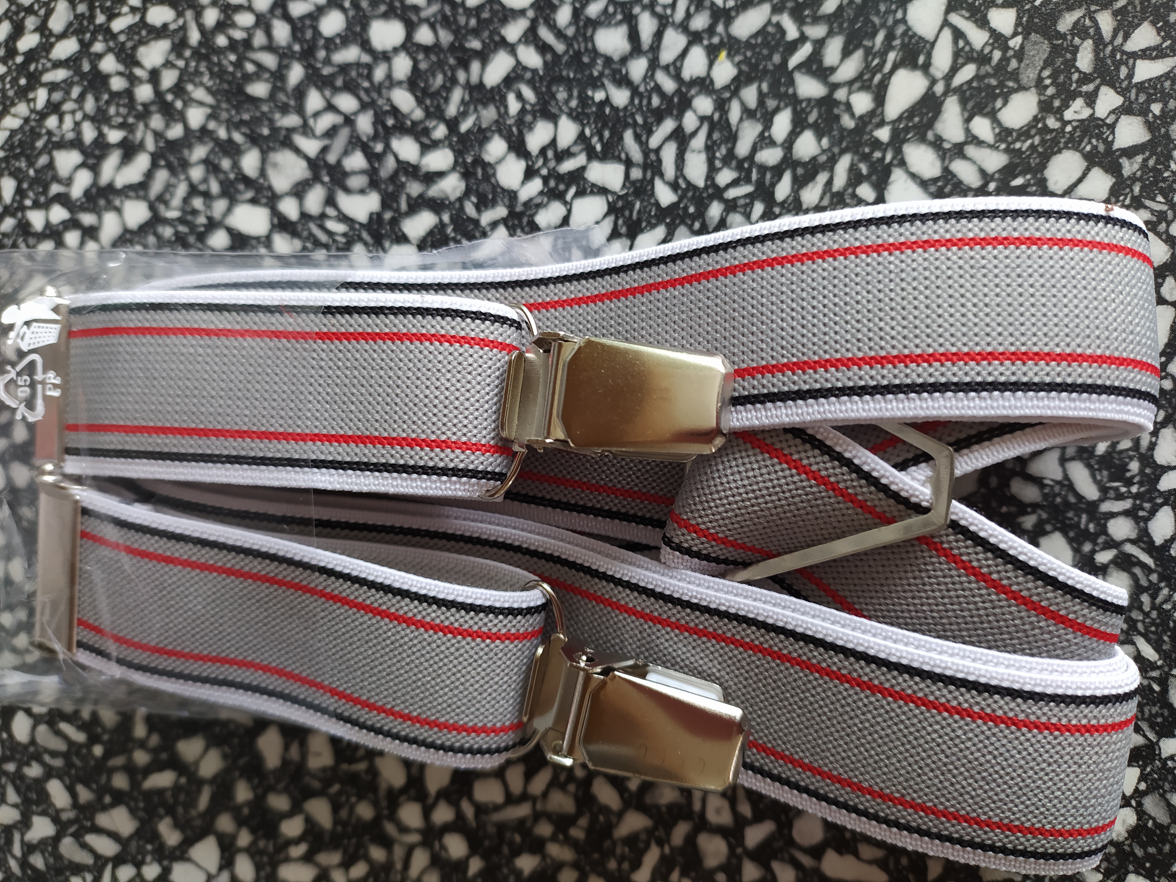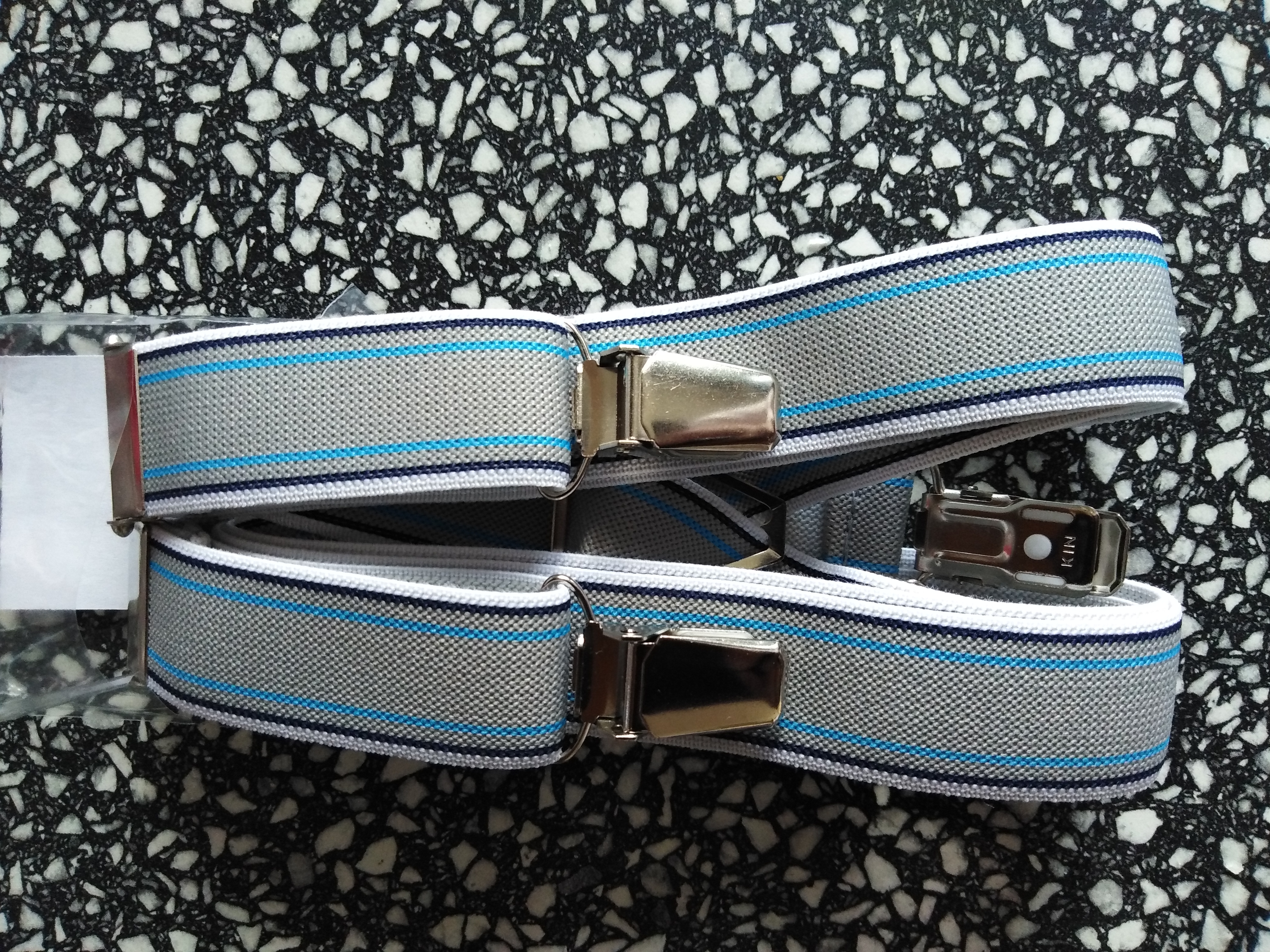 Šle pánské, šíře 2,5 cm se čtyřmi závěsy, tvar X, na výšku postavy až 195 cm, maximální délka je 115 cm v nenapnutém stavu. Uchycení na kovovou klipsu je velmi praktické, snadno je upevníte na jakékoliv kalhoty/kraťasy/sukni.