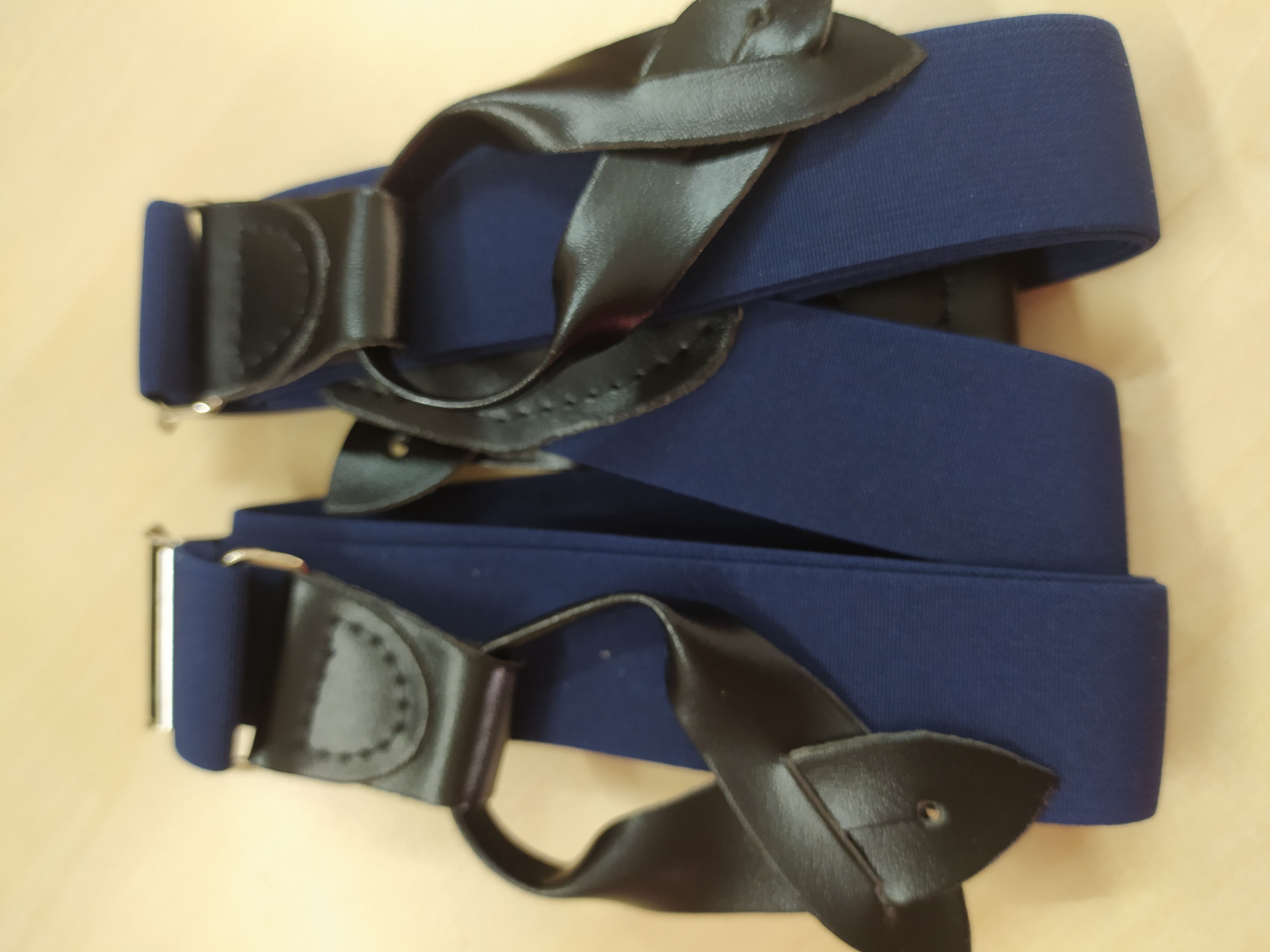 Šle pánské s koženkovými poutky, šíře 3 cm se třemi závěsy, tvar Y, na výšku postavy až 195 cm, maximální délka je 115 cm v nenapnutém stavu. Český výrobek, cena za 1 ks. Na kalhoty je zapotřebí našít knoflíky na které se poutka uchytí. Knoflíky nejsou součástí balení.