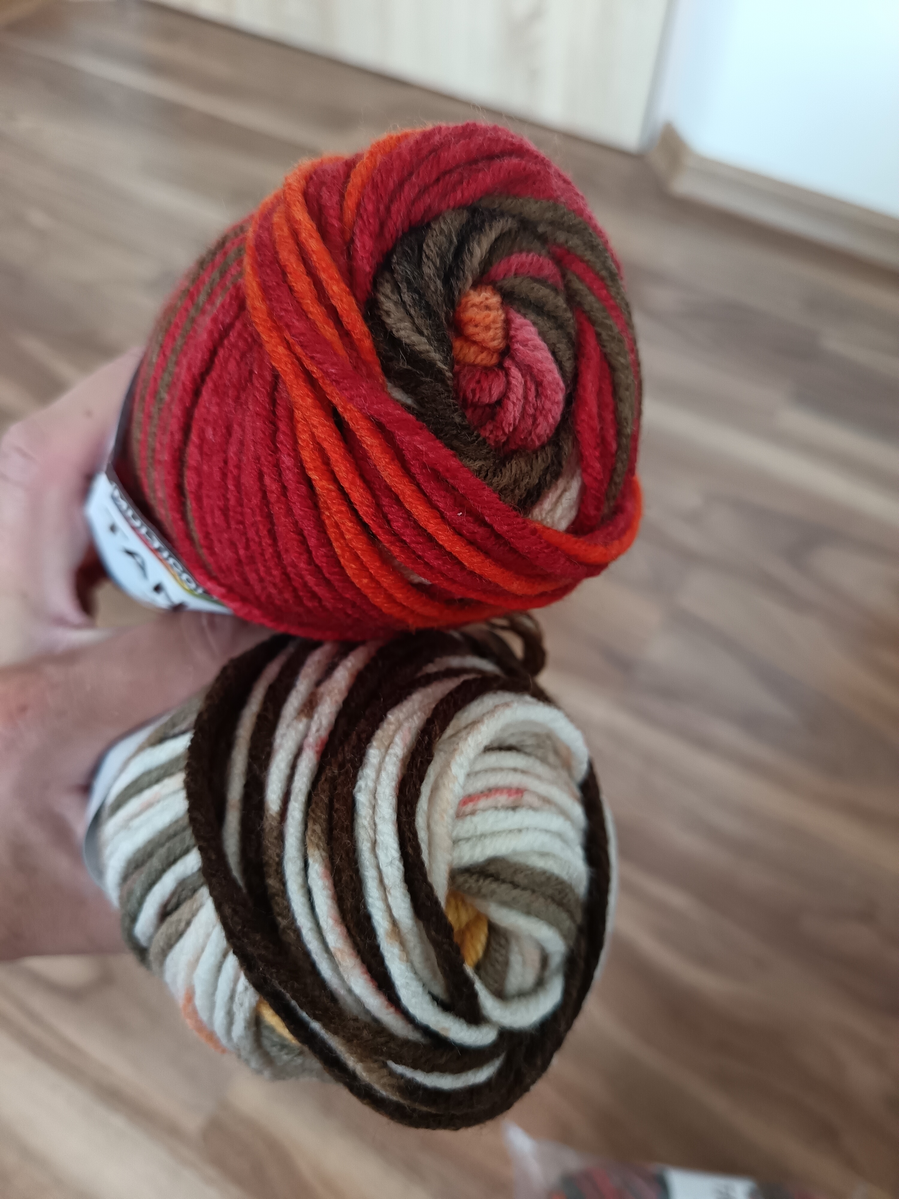 Pletací příze z akrylu, 1 přadeno = 100g = 120m, doporučená tloušťka jehlic 6-8 mm. 100 % akryl.