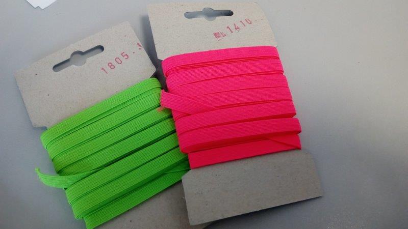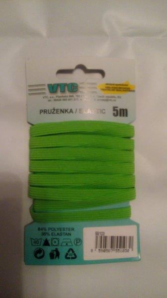 Guma prádlová barevná cca 6,6 mm, karta 5 m, tažnost 100-110%, cena za 1 kartu.