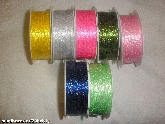 Saténová oboulící stuha, šířka 3 mm, návin 20 m. Cena za balení.