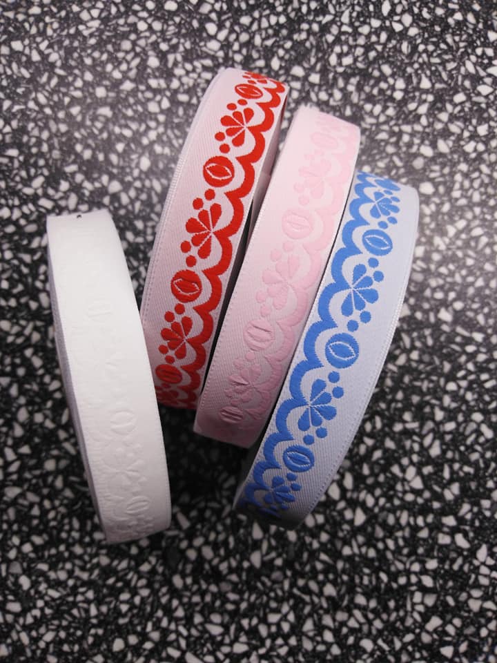 Vyšívaná stuha zoubková v šíři 20 mm, cena za metr. Zoubek je vyšit na rovné stuze.