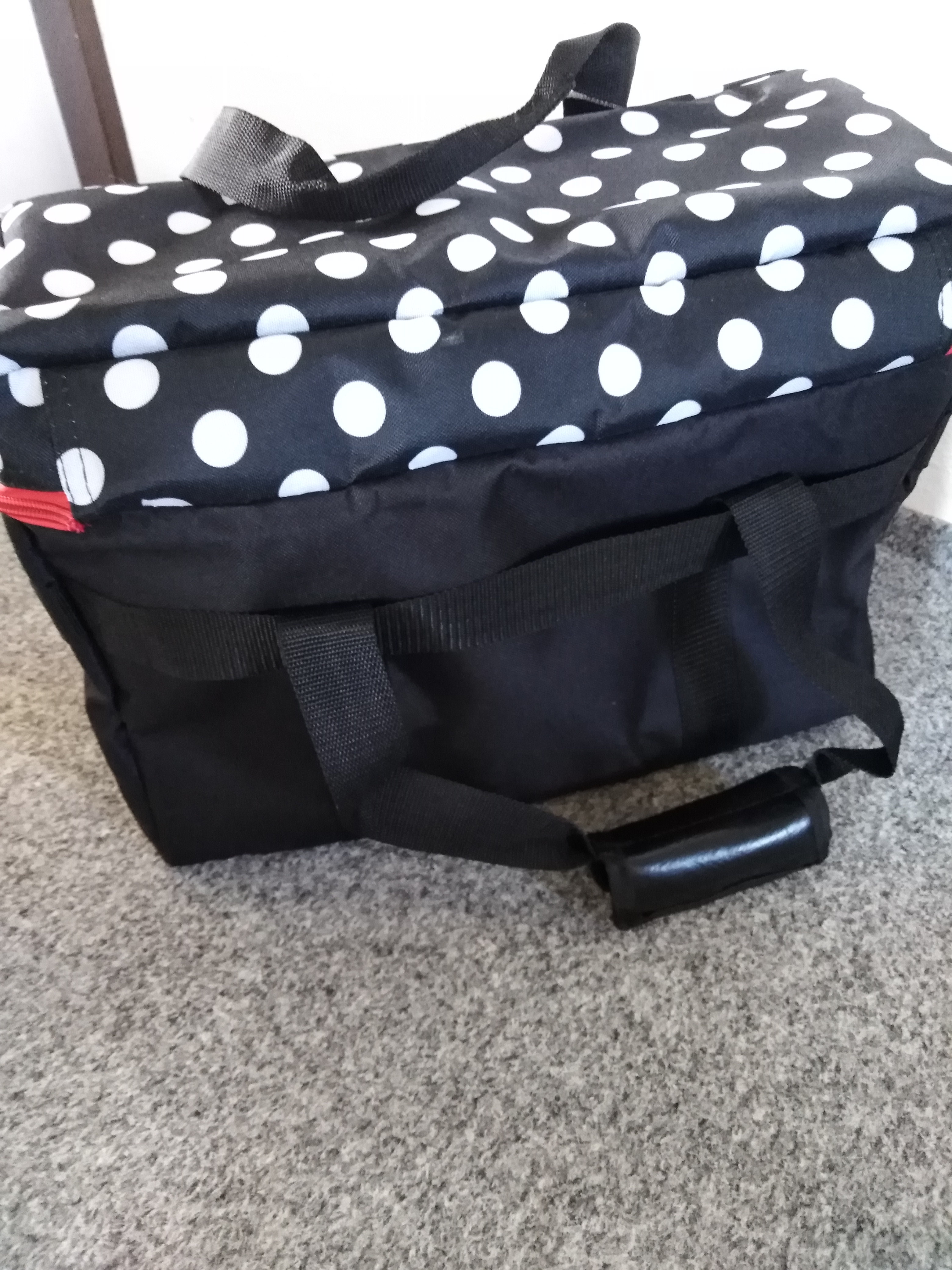 Prostorná a praktická převozní a skladovací taška na domácí šicí stroj, příslušenství a další pomůcky. Rozměry 44x20x35 cm, ramenní popruh, boční ukládací kapsa na zip, vnitřní popruh se suchým zipem pro upevnění stroje a jeho bezpečný převoz. Taška je kompatibilní s kufrem a kombinace je vhodná zejména při převozu dvou strojů nebo stroje a vetšího množství materialu a pomůcek.