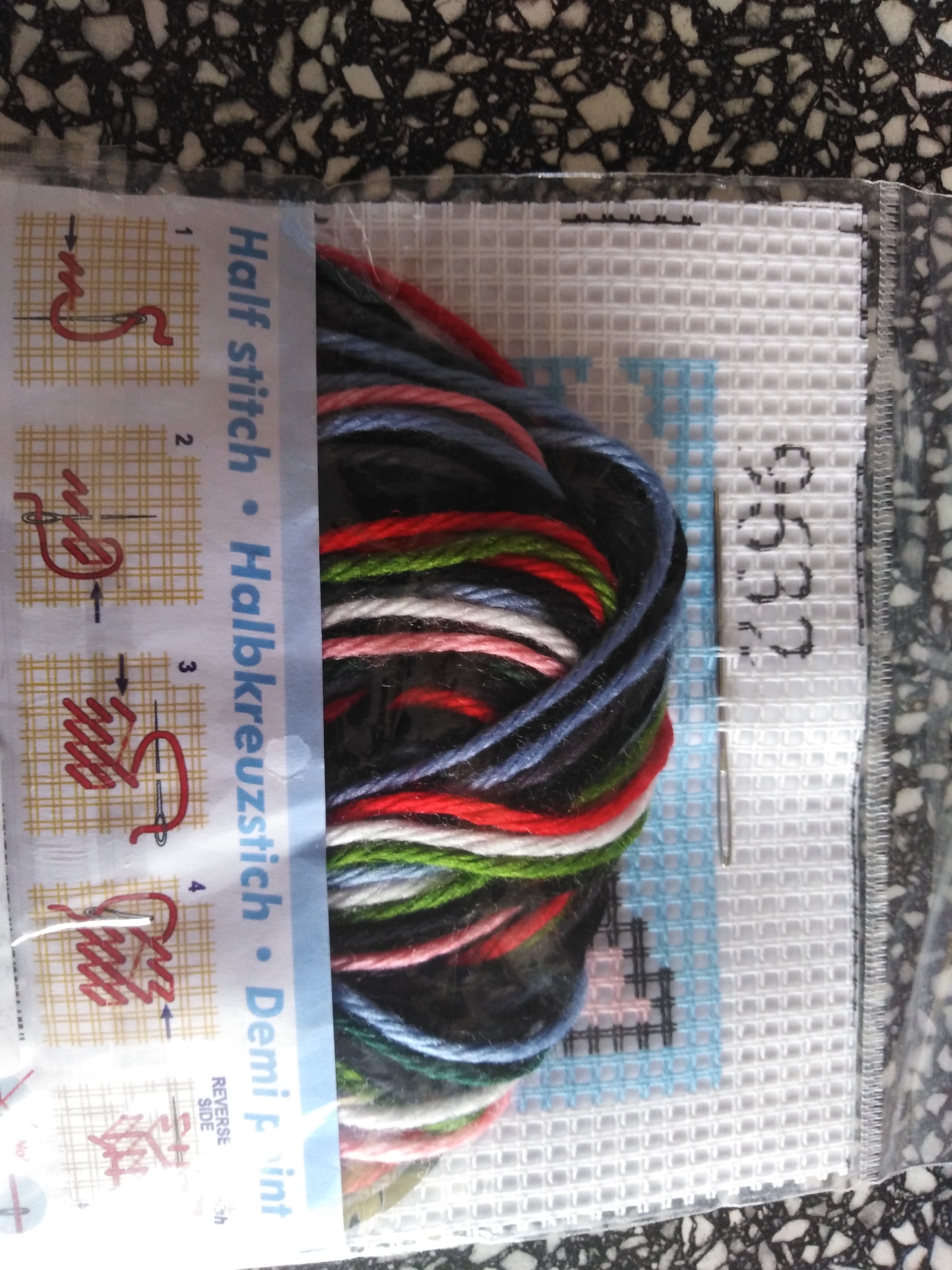 Sada vyšívací, různé motivy. Obsahuje předlohu 10,5x10,5 cm, vyšívací příze (100% bavlna), jehlu a návod. Cena za 1 ks.
