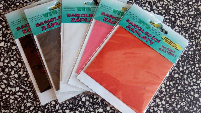 Samolepící nylonové záplaty o rozměru cca 12 x 20 cm, jeden kus na kartě.